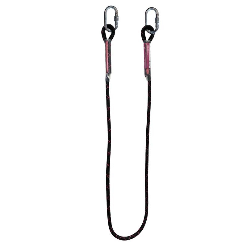 La eslinga simple con conectores 610111 es un elemento de amarre universal de posicionamiento y retención. Lleva dos mosquetones de acero roscado (17 mm) en cada extremo. De 1.5 m de longitud y 10,5 mm de diámetro.